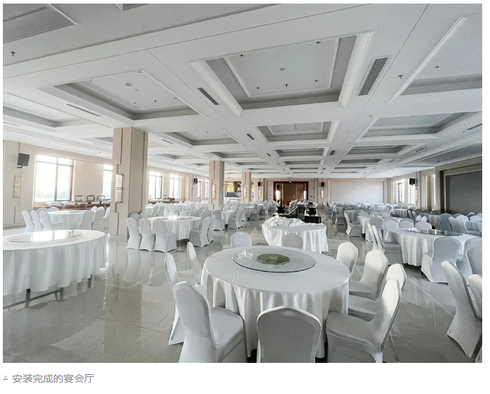 宴會廳需滿足大中型集會、聚餐及慶典活動等功能需求。宴會廳同樣采用了若干只M10固定安裝音箱好和若干臺MI系列數字功放。