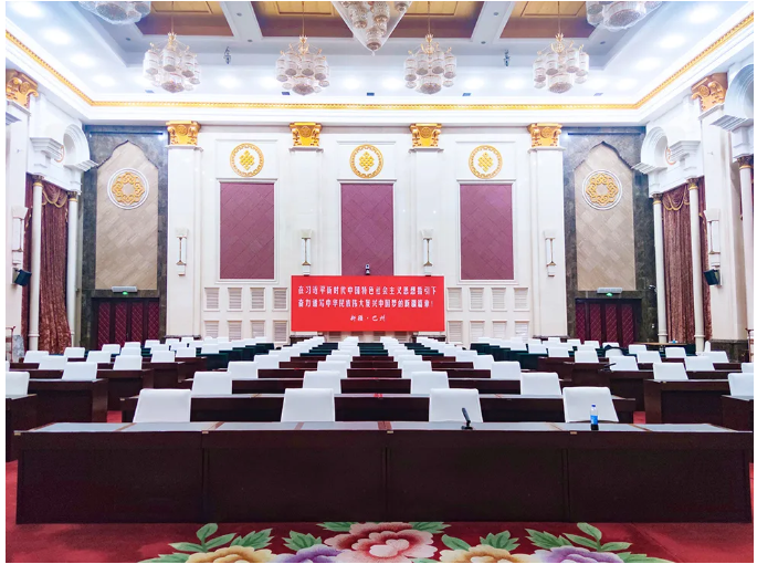 巴音郭楞賓館座落于南疆中心城市庫爾勒市最繁華的人民東路10號,是國家五葉級綠色飯店。賓館占地面積84畝,綠化面積占47%,素有“都市森林”的美譽。巴音郭楞賓館以獨具地方民族特色的熱忱服務(wù)接待過三十余位黨和國家領(lǐng)導(dǎo)人及國際政要。其多功能廳選用了“RF”VK線陣列揚聲器系統(tǒng)。
