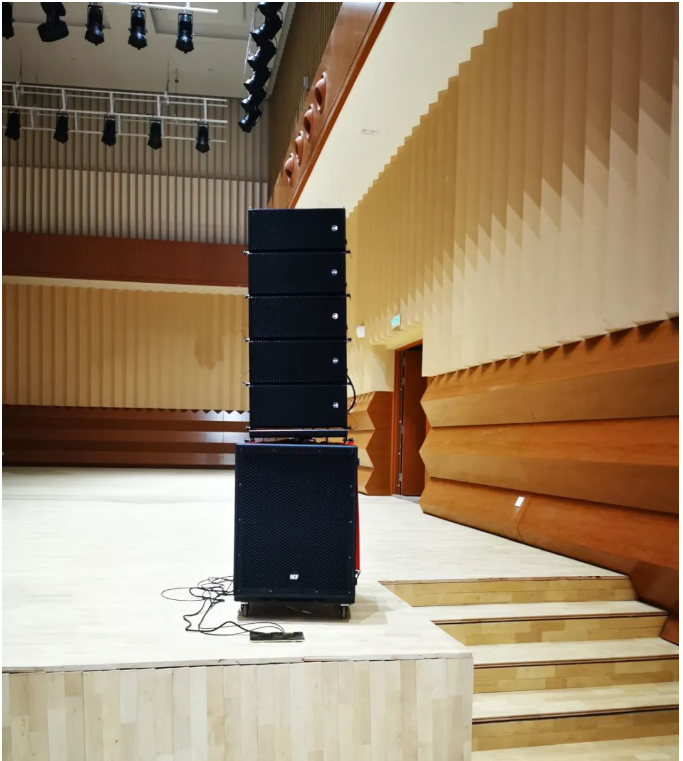 琴島”音樂廳音響系統(tǒng)采自意大利進(jìn)口品牌RCF音響,HDL有源線陣列系統(tǒng),舞臺(tái)返聽為兩組ART300有源系列音箱。