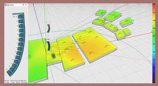 在正式進場安裝之前,我們提前通過Resolution建模軟件仔細分析模擬了揚聲器安裝點位、角度、聲場覆蓋等,為現(xiàn)場安裝及調(diào)試提供了更為具體的基礎(chǔ)和更多的時間。實際安裝過程中,揚聲器在聲學(xué)結(jié)構(gòu)GRG上3D建模定位一次安裝完成,實現(xiàn)了精準的覆蓋和良好的線陣耦合,為后續(xù)調(diào)試打下堅實的基礎(chǔ)。最終調(diào)試的結(jié)果和前期分析模擬完全吻合,