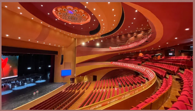 作為特大型甲等劇場,珠峰大劇院總建筑面積約為3萬平方米,觀眾廳設(shè)有池座、一層樓座和二層樓座共三層坐席,可容納約1600名觀眾,因此劇院所需聲音覆蓋的面積很大,聲場均勻度成為我們系統(tǒng)設(shè)計調(diào)試的一大挑戰(zhàn)。旅游創(chuàng)意產(chǎn)業(yè)園區(qū)內(nèi)標志性建筑物,大劇院地處。