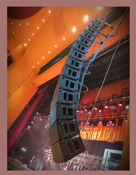 主擴系統(tǒng)采用左中右三組線陣列揚聲器結(jié)合覆蓋的方式,其中左右聲道每組吊掛14只