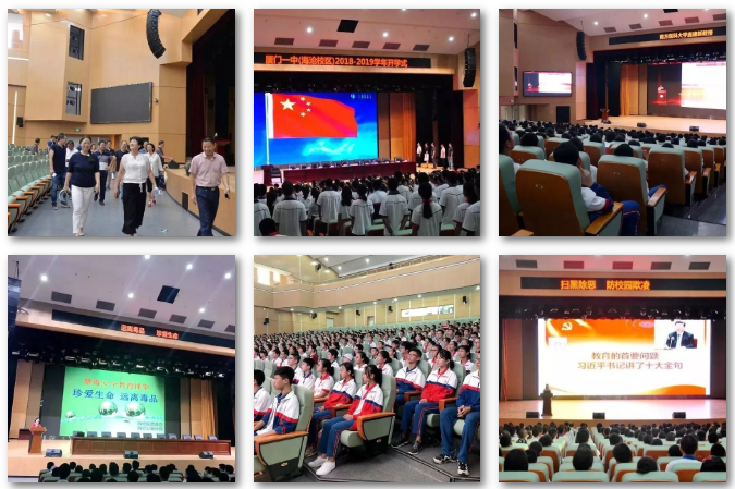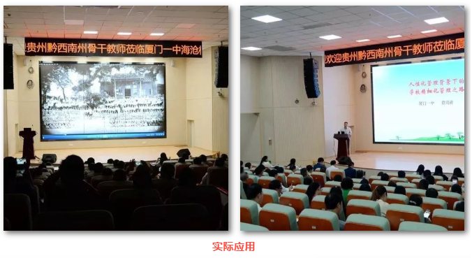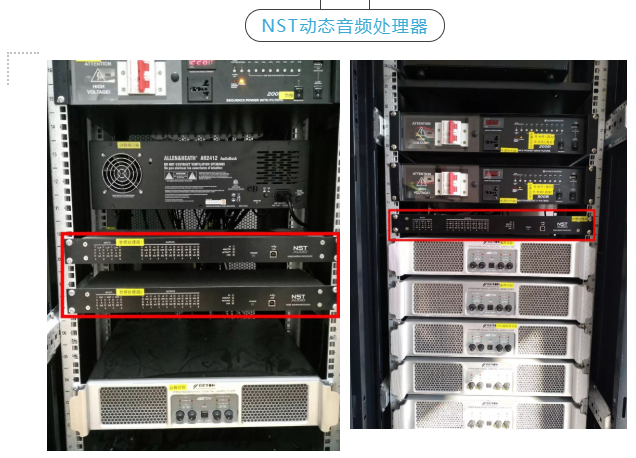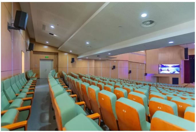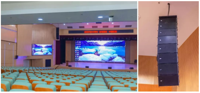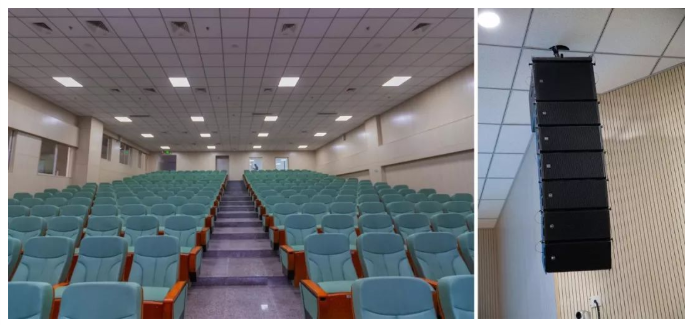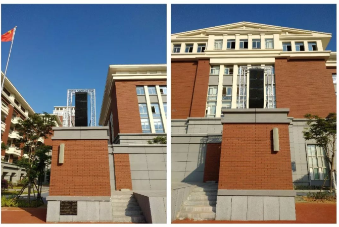 在400米標(biāo)準(zhǔn)運動場主席臺兩側(cè)吊掛著兩串線陣列,為適應(yīng)現(xiàn)場環(huán)境采用了RCF全天候HL號角負載陣列系統(tǒng)。