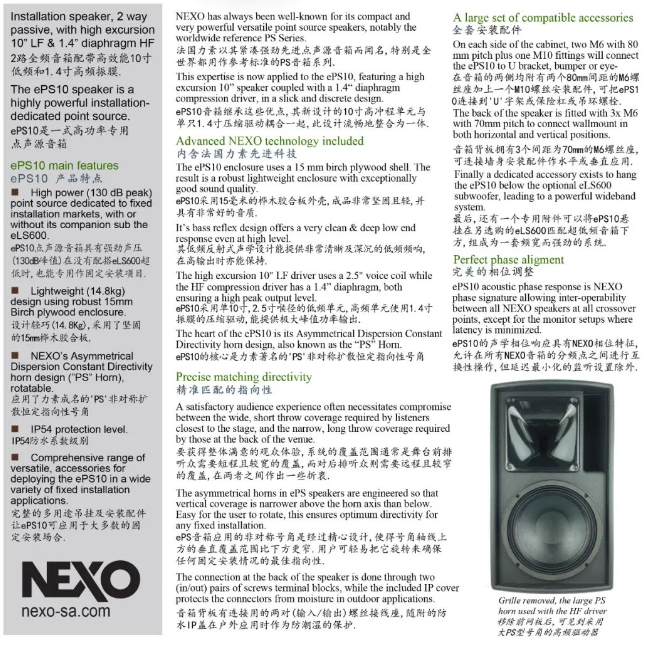 這里的環(huán)境十分優(yōu)雅,而且玻璃區(qū)域較多,不需要很強(qiáng)烈的擴(kuò)聲系統(tǒng)。因此選擇部署NEXO的小型全頻系統(tǒng)。上海弘韻智能系統(tǒng)工程有限公司的設(shè)計(jì)人員利用NEXO專用仿真模擬聲壓測(cè)試軟件NS-1對(duì)場(chǎng)地進(jìn)行構(gòu)建,并與酒店方的團(tuán)隊(duì)討論選項(xiàng)和限制。最終選擇了NEXO ePS10全頻音箱,ID14同軸全頻音箱和IDS110超低頻音箱搭配使用。ePS10單10寸全頻音箱采用長(zhǎng)沖程10寸低頻單元和1.4寸音圈高頻壓縮驅(qū)動(dòng),低音反射式設(shè)計(jì),箱體利用樺木膠合板,堅(jiān)固且重量輕。在70Hz到20KHz的頻響實(shí)現(xiàn)130dB的峰值聲壓,多用于小型主擴(kuò)聲與舞臺(tái)返送監(jiān)聽。ID14的核心采用定制開發(fā)的同軸單元,1.3寸音圈的4寸低頻驅(qū)動(dòng)器和1.4寸振膜的高頻驅(qū)動(dòng)使它能輸出平滑,干凈的聲音。可輸出116dB的峰值聲壓,兩種號(hào)角可改變擴(kuò)散角度,讓它應(yīng)用到不同的環(huán)境中。作為NEXO現(xiàn)有產(chǎn)品體積最小的音箱,多用于小型環(huán)境補(bǔ)聲和全景聲。IDS110超低頻音箱采用長(zhǎng)沖程10寸單元,可輸出125dB的峰值聲壓,多用于搭配ID系列的低頻補(bǔ)充。
