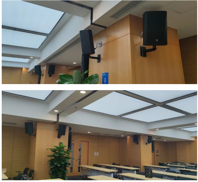 在報告廳中后場兩側(cè)。每只音箱的輻射角度都經(jīng)過專業(yè)且細致的調(diào)整,確保室內(nèi)聲場覆蓋均勻。這都得益于TURBOSOUND在產(chǎn)品設(shè)計方面做到真正的精益求精。