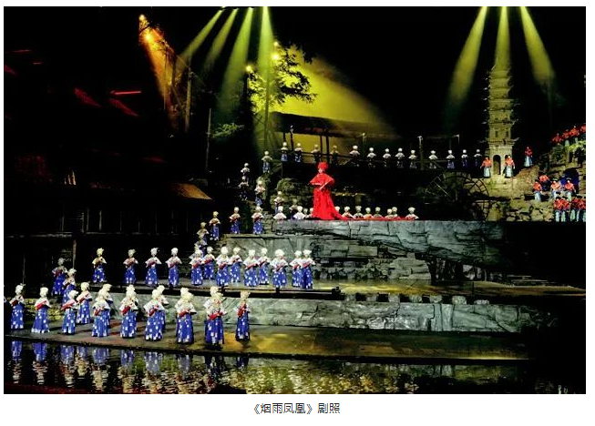 其實,這個方法之前也曾多次使用。不過這次的實踐讓筆者發現,很多情況下聲音的獨特效果可以根據舞美場景,甚至利用舞美裝置的特性來實現。這一點以后也可以繼續跟音響師們研究探討,從中發現、挖掘并再現出契合戲劇創意的聲音效果。例如,國外有的錄音棚用老教堂或者工廠廠房改造,以得到想要的聲音效果,包括好萊塢的電影錄音。這具有無限拓展的可能性,因為每一種聲音在不同的空間都會是不同的,關鍵也在于音響師是否有主觀創新的想法,畢竟對于多數戲劇音響設計來說,音響師首先要保證的是戲劇對聲音的基本要求,然后才是個性化需求。另外,音響師對舞美空間的解讀也尤為重要,舉個例子,幾年前參加湖南鳳凰的《煙雨鳳凰》實景演出項目的舞美設計,景的縱深有50 m多,一側是用于造景的山,一側是吊腳樓,中間風雨橋作為兩者的連接,遠處縱深就是利用實景的山和樹林。該劇的音響師就根據這樣一個悠遠的空間環境,制造從左到右的聲像差,形成由遠及近的聲音效果,的確讓觀眾感受到了空間距離上聲音傳遞效果,十分契合舞美所營造出的氛圍。
