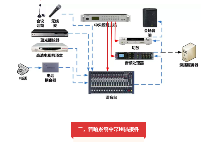 目前,專業音響設備的內部電路信號接口基本上都是平衡式的接口,一般為卡農或者大三芯插座。對于專業音響設備之間的連接盡可能全部采用平衡式連接,以防止莫名其妙的信號干擾。