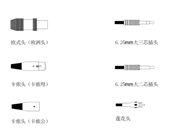 話筒到調音臺:-----平衡 方式的音頻連接線:卡儂公母線。