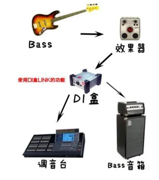 DI盒將一個高阻抗的不平衡信號轉換為一個低阻抗的平衡信號。由于阻抗降低,以及采用了抗干擾和共模抑制更好的平衡線路傳輸,使得要被發送的信號在經過長線路傳輸時大大減少了信號損失(尤其是高頻信號)。此外,混音臺的前置放大器一般被設計為只可以接受來自麥克風的微弱的低阻信號,所以由高至低的阻抗轉換是極有必要的。