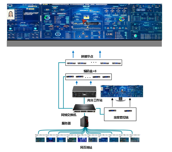 威創(chuàng)將自主可控的可視化應(yīng)用、萬(wàn)顯軟件等進(jìn)行深度融合,推出獨(dú)有的多應(yīng)用“OneFrame” 引擎顯示技術(shù),實(shí)時(shí)將數(shù)十個(gè)WEB頁(yè)在一臺(tái)高分桌面同步開(kāi)窗顯示,達(dá)到單一高分應(yīng)用的同步切換效果,多個(gè)場(chǎng)景間切換時(shí)間小于1S;不用重新開(kāi)發(fā)頁(yè)面,利用用戶可視化監(jiān)視、BI系統(tǒng)、大數(shù)據(jù)展示系統(tǒng)等海量頁(yè)面組合成高分場(chǎng)景展示,具有顯示效果好,場(chǎng)景制作快,投入成本低的優(yōu)勢(shì);網(wǎng)頁(yè)URL直接訪問(wèn),智能動(dòng)態(tài)分辨率,靈活布局,一鍵調(diào)用,無(wú)需增加硬件來(lái)增加畫面數(shù)量,減少硬件成本,無(wú)接入頁(yè)面數(shù)量限制。為新一代智能指揮控制中心的高分可視化應(yīng)用與傳控系統(tǒng)的有效結(jié)合提供了綜合解決方案。