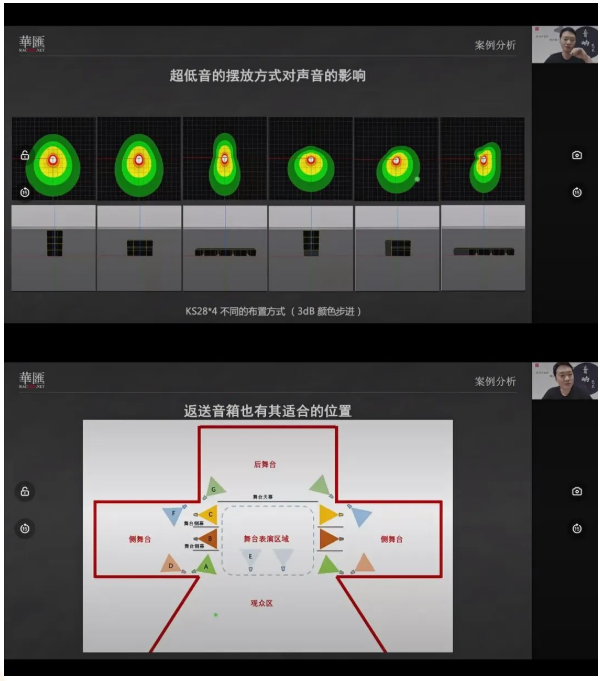 揚(yáng)聲器按驅(qū)動(dòng)方式來(lái)分,分別是有源和無(wú)源音箱;按照頻率劃分,分別是超低頻、低頻和全頻音箱;按耦合方式劃分,則是點(diǎn)聲源和線陣列音箱。在演出過(guò)程中,每一種音箱有著不同的分工,多種音箱搭配使用最終為觀眾呈現(xiàn)一個(gè)完整的音頻片段。
