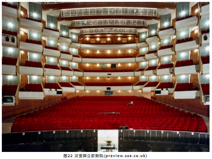 對于歌手而言,提供<35ms早期反射聲,只有舞臺上布景的反射以及臺口側(cè)墻(包括臺框和臺口側(cè)包廂或樓座欄板)的散射能夠做到。對于樂隊(duì)而言,下沉式樂池四周的墻面、懸挑的頂部以及池座上部的包廂欄板等都能提供充足的<35ms早期反射聲。